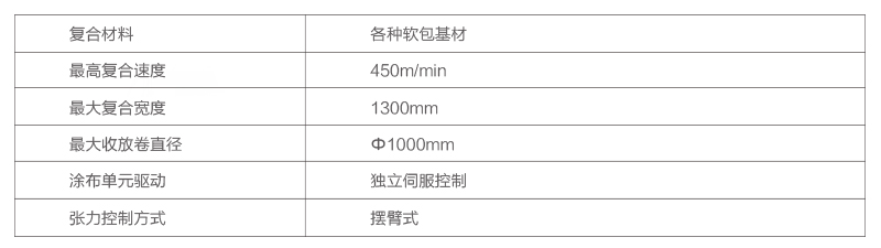 無溶劑復(fù)合機主要結(jié)構(gòu)特點:1.收放卷:可實現(xiàn)無軸雙向收放材料,并采用了通過歐洲進口的直流母線運動控制器控制,有效的保證了張力控制的穩(wěn)定性與高精度;無溶劑復(fù)合機涂.............